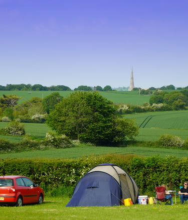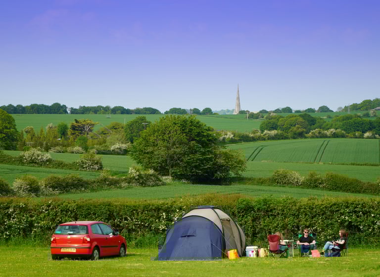 'What a glorious campsite! The views of Salisbury Cathedral and lovely local walks. It's not a campsite for those who need all the facilities. It has (thankfully) not got a kids play area, or designated pitches, but it has got a relatively flat field and lovely helpful owners and you can walk into Salisbury in less than an hour. - We will definitely be back.' TL